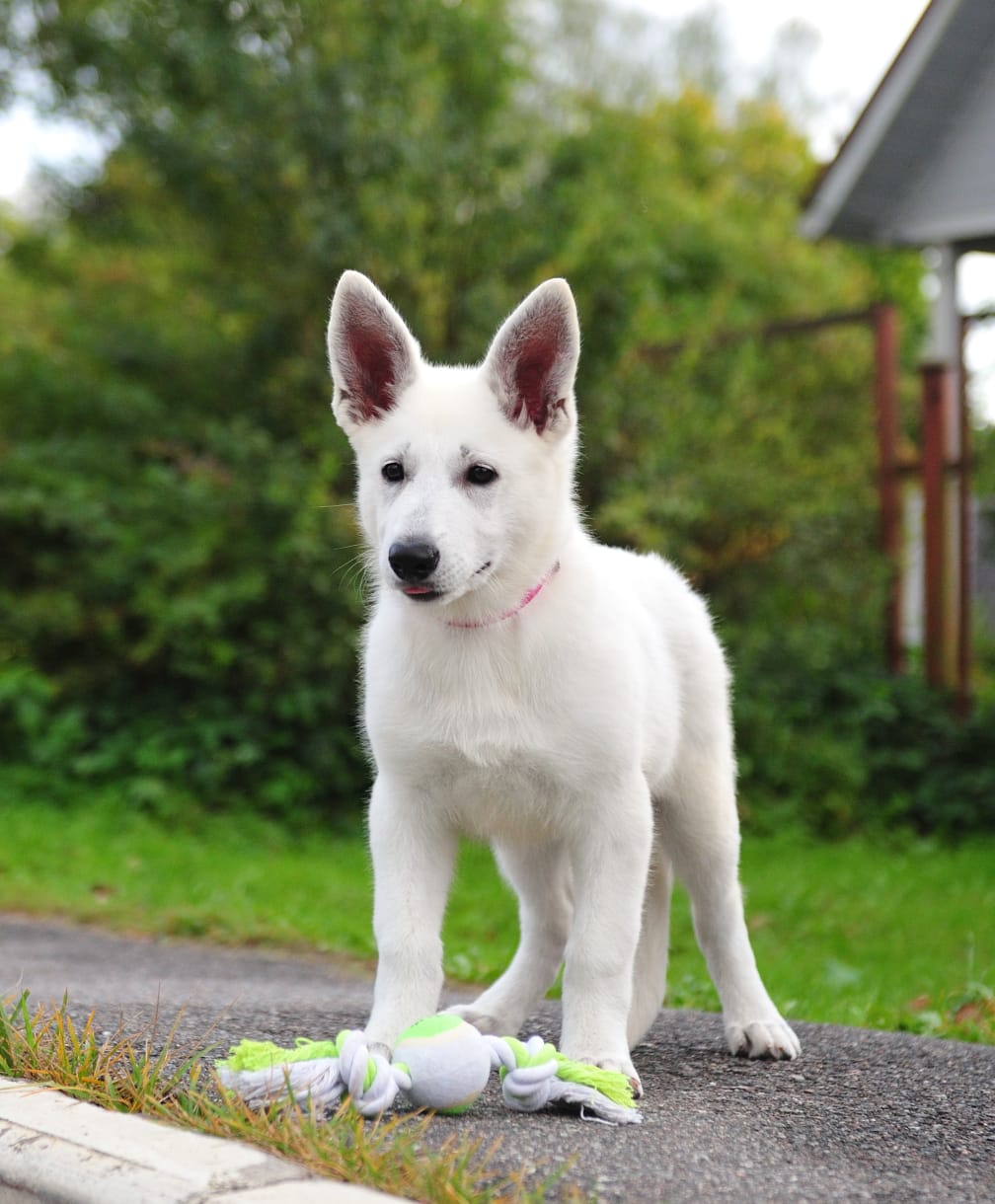 Прекрасная девочка белой Швейцарской овчарки. Анатомичная, психика и движения на 5+. Перспективна для дальнейшего разведения, выставочная карьера приветствуется.